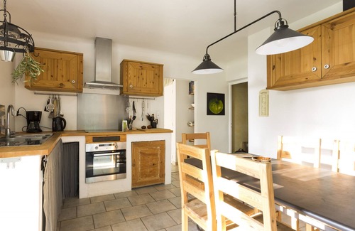 Electric cars can be charged at €30 per week,The delightful holiday home Les Amandiers with private swimming pool is an old "beekeeping" farm located in a protected nature area. The holiday house lies in the middle of vineyards and almond trees on the edge of the idyllic town of Ilse-sur-la-Sorgue (Provence / Alpes-Côte d'Azur), also called the Venice of Provence.The holiday home in the Vaucluse, with excellent value for money, has been carefully renovated. The fireplace and Provencal kitchen give the holiday home an authentic character. Sustainable materials give the house a modern touch and large windows ensure a lot of light in the holiday home. The 4 ° bedroom is an adjoining studio.There is a huge garden with a beautiful private swimming pool (9x4.5m 1.6m deep with stairs in the swimming pool and lighting, open from 1 May to 30 Sept.). The holiday home is on the side of a hill with a view of Châteauneuf de Gadagne at 20 km. With the three terraces you can enjoy the sun at different times, such as a delicious breakfast by the pool, in the afternoon in the shade of the naturally covered terrace and to end in the evening on the terrace of the studio with a view of the vineyards where you can admire the beautiful sunset.In Les Amandiers you enjoy total tranquility in a beautiful nature with panoramic view and yet you are so close to the town and lots of other possibilities.Thanks to the good location of this holiday home you can plan many trips.