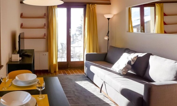 "Les Arsets 56/2", 1-room studio 18 m2, on the ground floor, south facing position. Simple and practical furnishings: living/dining room with 1 sofabed (140 cm), TV (flat screen). Exit to the terrace, south facing position. Kitchenette (2 hot plates, oven, toaster, kettle, electric coffee machine, raclette grill, fondue Set (cheese)). Shower/WC. Large terrace 16 m2, south facing position. Terrace furniture. Very beautiful view of the mountains. Facilities: hair dryer. Internet (WiFi). Parking. Please note: non-smokers only. 1 pet/ dog allowed.