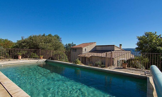 Viens 18 km from Apt: Single-family house "Les Cairnes". Outside the resort, in a secluded position. Private: property 2'500 m2, swimming pool fenced (8 x 4 m, depth 150 cm, seasonal availability: 01.May. - 30.Sep.). Barbecue. Steep motor access (via unmade road). Parking on the premises. Shop 12 km, grocery 300 m, supermarket 11 km, restaurant 400 m, bus stop "Centre" 600 m. Please note: car recommended. The owner does not accept any youth groups.