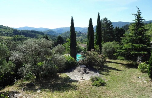 Les Cyprès is a large modern villa, homely and rather rustic, in the Southern Cevennes a kilometre from the village of Bréau and 7 kms from Le Vigan