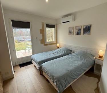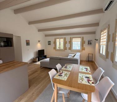 Offering garden views, Les gîtes de la Joubertie in Salon features accommodations, a seasonal outdoor swimming pool, and a garden. There's a private entrance at the vacation home for the convenience of those who stay. The vacation home offers rooms with air conditioning, free private parking, and free Wifi. The vacation home provides guests with a terrace, pool views, a seating area, a flat-screen TV, a fully equipped kitchenette with a dishwasher and a microwave, and a private bathroom with shower and a hair dryer. A toaster, a fridge, and stovetop are also featured, as well as a coffee machine and a kettle. At the vacation home, each unit comes with bed linen and towels. Bergerac Train Station is 25 miles from Les gîtes de la Joubertie, while Sarlat-la-Canéda Train Station is 30 miles away. Bergerac Dordogne Périgord Airport is 26 miles from the property.