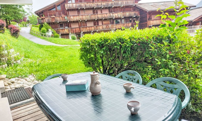 "Les G'rets", 1-room apartment 27 m2, on the ground floor. Entrance hall. Living/dining room with 2 pull-out beds (2 x 80 cm, length 190 cm), TV. Sleeping alcove with 1 x 2 bunk beds (80 cm). Kitchenette (2 hot plates, mini-oven, toaster, kettle, microwave, electric coffee machine, Capsules for coffee machine (Senseo) extra, raclette grill, fondue Set (cheese)). Bath/WC. Electric heating. Small patio. Terrace furniture. Facilities: washing machine. Internet (WiFi, extra). Parking. Please note: non-smokers only. TV only FR. Smoke alarm. Instead of an enclosed bedroom, some sleeping areas are located in an open-plan area (gallery, alcove, etc.). Offer by a private individual according to Art. 155, IV of CGI.