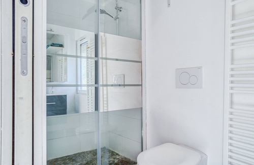 - Bathroom, accessible from the bedroom, with shower, WC, towel dryer