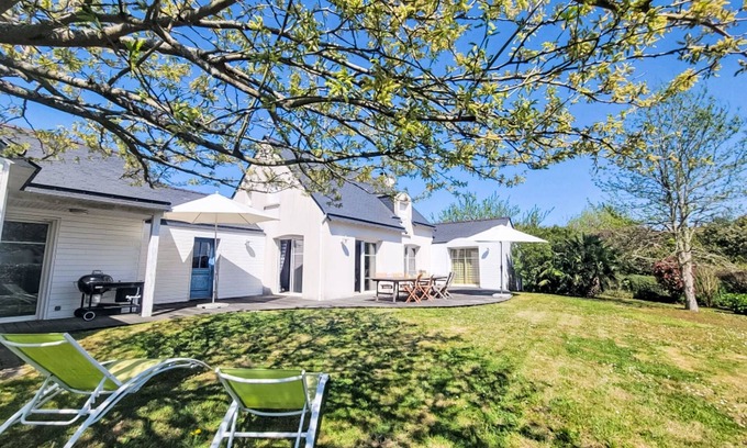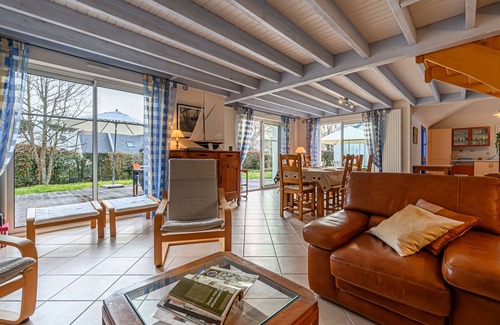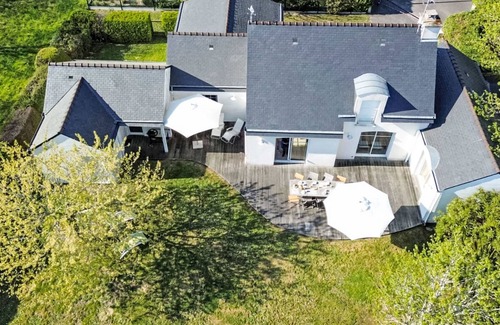 Large single-family house "Les Guérins". Property composed of main house and outbuilding, on the outskirts, 1 km from the centre of La Trinité sur mer, 800 m from the sea, 3 km from the beach, in a cul-de-sac. Private: garden 300 m2 (fenced), parking (for 2 cars) at the house. Shop 1.2 km, grocery 1.2 km, supermarket 1.2 km, restaurant 800 m, bicycle rental 850 m, bus stop 1 km, sandy beach "Kerbihan" 2.5 km, thermal baths "Thalazur Carnac" 7 km. Sports harbour 850 m, golf course (18 hole) 15 km, surf school 10 km, sailing school 1.5 km. Nearby attractions: Les Quais de la trinité-sur-mer 1.5 km, Les Alignements de Carnac 3.7 km, Port de saint-goustan & Auray 17 km, Presqu'île de Quiberon 18 km, Vannes et son centre historique 31 km. Hiking paths: Golfe du Morbihan 20 km.