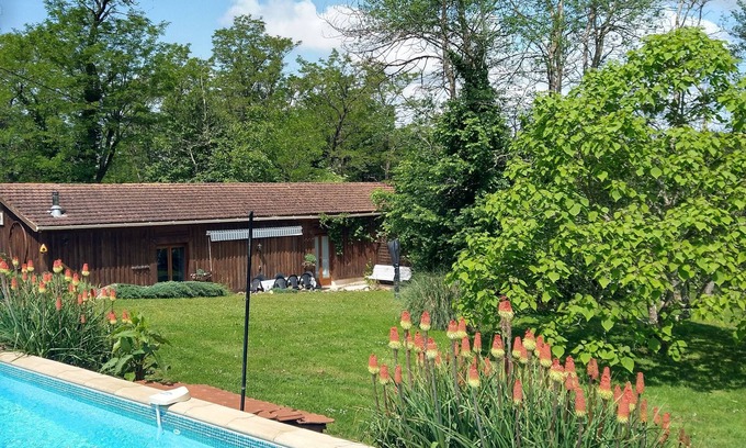 The peaceful, one storey gîte 'Les Hirondelles' is surrounded by lawns and fruit trees, with views of the forest covered valley. The wood clad building was inspired by the old tobacco barns in the region, and is closely situated to the pool and play area. Its terrace overlooks the orchard, with garden furniture and a BBQ, with lawns beyond for relaxing, playing and picnicking.