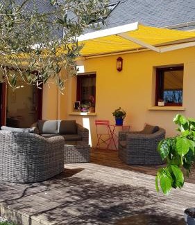 Providing a garden, Les Korrigans provides accommodations in Tréméven. This property offers access to a terrace, free private parking, and free Wifi. Each room is equipped with a patio with garden views. At the bed and breakfast, each unit is equipped with a desk, a flat-screen TV, a private bathroom, bed linen, and towels. A fridge is also provided, as well as a coffee machine and a kettle. At the bed and breakfast, every unit is fitted with a seating area. A selection of options including fresh pastries, pancakes, and fruit are served for the continental breakfast. There is a coffee shop, and packed lunches are also available. Parc des Expositions Lorient is 15 miles from the bed and breakfast, while Lorient Train Station is 15 miles from the property. Lorient South Brittany Airport is 14 miles away, and the property offers a paid airport shuttle service.