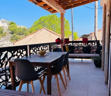 Les nuits d'été Niolon offers accommodations in Le Rove, a 17-minute walk from Plage de la Pointe de Figuerolles and 13 miles from Les Terrasses du Port Shopping Center. This beachfront property offers access to a balcony, free private parking, and free Wifi. Vieux Port Metro Station is 14 miles away and Marseille Saint-Charles Train Station is 14 miles from the bed and breakfast. Featuring a terrace and sea views, the bed and breakfast includes 2 bedrooms, a living room, satellite flat-screen TV, an equipped kitchen, and 1 bathroom with a shower. Towels and bed linen are offered in the bed and breakfast. The property has an outdoor dining area. Guests at the bed and breakfast will be able to enjoy activities in and around Le Rove, like fishing and hiking. Joliette Metro Station is 13 miles from Les nuits d'été Niolon, while Museum of European and Mediterranean Civilisations is 14 miles from the property. Marseille Provence Airport is 8.7 miles away.
