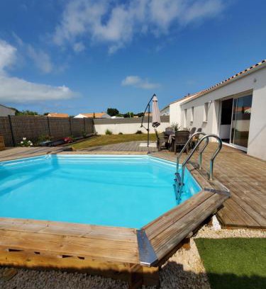 Les pivoines Notre-Dame-de-Monts is located in Notre-Dame-de-Monts, just a 18-minute walk from Bois Soret Beach and 6.5 miles from Casino of Saint Jean de Monts. This beachfront property offers access to free Wifi and free private parking. Outdoor seating is also available at the vacation home. Featuring a terrace with garden views, this vacation home also includes a flat-screen TV, a well-equipped kitchen with a dishwasher, an oven, and a microwave, as well as 1 bathroom with a walk-in shower and a hair dryer. For added privacy, the accommodation has a private entrance and soundproofing. Guests can enjoy the outdoor swimming pool and garden at Les pivoines Notre-Dame-de-Monts. Pornic Train Station is 27 miles from the accommodation, while Pornic Castle is 28 miles from the property. Nantes Atlantique Airport is 40 miles away.