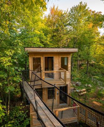 Les Refuges Perchés Mont-Tremblant offers accommodations in Mont-Blanc, 20 miles from Mont Tremblant Casino and 24 miles from Mont-Tremblant National Park. This property offers access to a terrace, free private parking, and free Wifi. When staying at the vacation home, guests can use private entrance. The units have a fully equipped kitchenette with dining area, a stovetop, coffee machine, and kitchenware. The vacation home features some units with lake views, and each unit is fitted with a balcony. At the vacation home, each unit has a outdoor furniture and a shared bathroom. During warmer months, you can make use of the barbecue facilities and eat on the private patio. For guests with children, Les Refuges Perchés Mont-Tremblant provides an indoor play area and outdoor play equipment. Guests can also warm up near the outdoor fireplace after a day of skiing. Brind’O Aquaclub is 24 miles from the accommodation, while Golf le diable is 20 miles from the property.