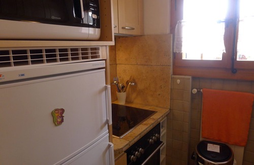"Les Seracs 1", 2-room apartment 45 m2, on the upper ground floor, south facing position. Comfortable and beautiful furnishings: living/dining room with 1 double sofabed, Scandinavian wood stove and satellite TV (flat screen). Exit to the terrace. 1 room with 1 french bed. Small kitchen (oven, dishwasher, 4 ceramic glass hob hotplates, kettle, microwave, freezer, raclette grill). Bathroom, sep. WC. Terrace. Terrace furniture. Partial view of the mountains. Facilities: hair dryer. Internet (WiFi, free). Parking space n 1. Please note: non-smoking house.
