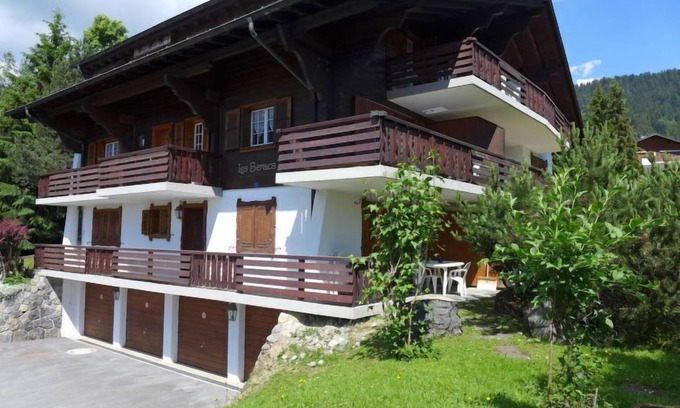 Chalet "Les Seracs", 3 storeys. Above Villars, 600 m from the centre of Villars, in a quiet, sunny position, south facing position. For shared use: garden with lawn and plants. In the house: central heating system, washing machine (extra), tumble dryer (for shared use, extra). Motor access to the house. In Winter: please take snow chains. (13 steps). Shop 700 m, grocery 700 m, restaurant, 8 minute walk to the centre, bus stop 200 m, railway station "Villars-Bretaye" 1 km, indoor swimming pool 900 m, thermal baths "Lavey-les-bains" 19 km. Sports harbour 25 km, golf course (18 hole) 7 km, indoor tennis centre 1.7 km, sports centre 1.7 km, mountain railway 1 km, ski lift 1.2 km, gondola lift 700 m, ski bus stop 200 m, ski school 900 m, children's ski school 1.7 km, ice rink 900 m, children's playground 1.1 km. Free ski bus service to the ski region Villars.