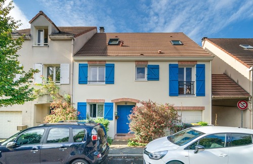 This 70 m² flat in Rungis can accommodate up to 6 people (ideal for 4 adults with 2 children). Located on the 1st floor (no lift) of a pretty house with blue shutters in the heart of the village and in its green setting. It comprises a 30 m² living room with open-plan fitted kitchen, three good bedrooms and two bathrooms (with bath). Wifi, bed linen and towels included - we're waiting for you!