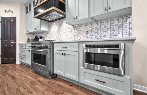 Essentials for meal preparation are at your fingertips, whether you choose the 33" workstation sink with a custom brass faucet—a delightful blend of style and functionality—or opt for the convenience of the Samsung dishwasher, allowing you to focus on creating delightful dishes without the hassle of manual cleanup.