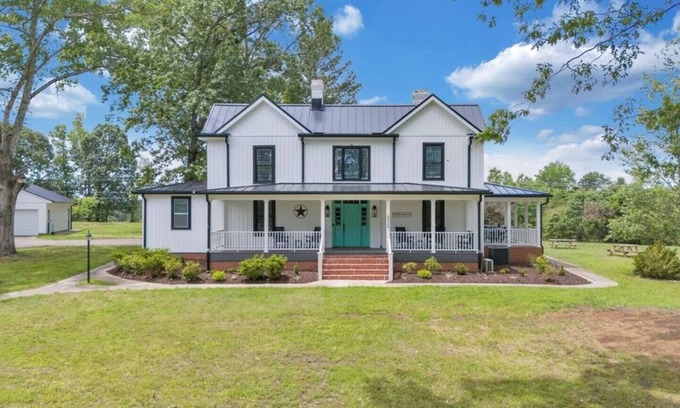 Step back in time—without sacrificing modern comforts—at this beautifully renovated farmhouse nestled on 12 private acres of countryside. With 5 spacious bedrooms and 4 full bathrooms, this historic home blends rustic charm with contemporary upgrades, offering a perfect escape for families, friends, or group retreats.