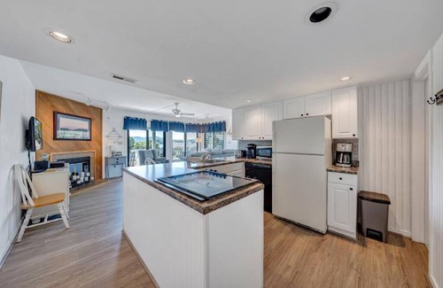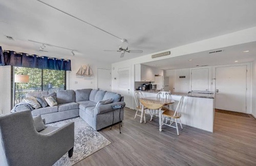 is an experience that you will always remember. There's lots to do here at Bernard's Landing, if you can tear yourself away from the wrap around porch. You will enjoy an oversized bedroom with King bed and SmartTV for streaming. Full Bathroom, washer/dryer and fully equipped kitchen. Charcoal grills right behind the building. Grocery shopping nearby. Award winning restaurant onsite that you can walk to. You can also walk to all of the fun amenities: 2 Outdoor pools, indoor pool, hot tub, volleyball, 6 pickleball courts, tennis courts, gym, indoor and outdoor basketball, beaches, sauna, playground and children's wading pool and you can swim and fish from any dock here!