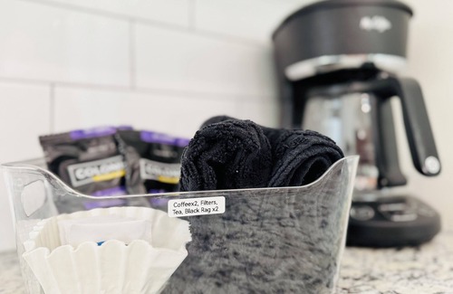 Our commitment to excellence is reflected in the high-end linens, bedding, towels, and amenities provided. To enhance convenience, we provide a starter pack of essential supplies such as dishwashing and laundry supplies, as well as shampoo, conditioner, body wash, and hand soap/lotion, ensuring that you have everything you need for a seamless and enjoyable stay. Wake up to the aroma of freshly brewed coffee or unwind with a soothing cup of tea, as these provisions are thoughtfully included for your convenience.