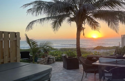 Luxury on the beach! Enjoy a hot tub overlooking the beach. BBQ grill, umbrellas, lounge chairs etc. 2 King beds/2 bedroom 1 1/2 bath townhouse. Furnished with top-of-the-line beds/mattresses and high quality sheets and furnishings. Enjoy walking to restaurants, bistros, coffee, hair salons, surf shops, boutiques etc. Visit local surf and bike shops for bike, surfboard, paddle board rentals etc. Visit historical downtown Melbourne with it’s wonderful restaurants and live music, antique and boutique shopping.