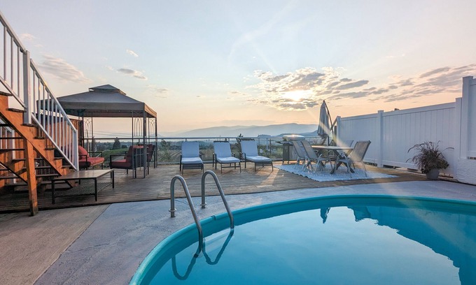 Kick back, relax and enjoy the incredible city, lake and orchard views from Black Mountain with epic sunsets by the pool! We are 40 minutes from Big White, 15 minutes to downtown and the airport, 10 minutes to Orchard Park mall, 3 minutes from a grocery store and close to many beaches, hikes, golf courses and wineries.