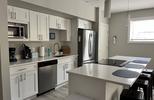 This First floor PORT SIDE 2 BR, 2 BA (Unit101) condo is bright, airy and offers a stylish eat-in kitchen with quartz counters with seating at the custom breakfast bar. It comes fully stocked with pots, pans, plates and cutlery for you to make delicious meals using the brand new stainless appliances. But why cook when you are within walking distance to all of Old Orchard Beach's great restaurant, pubs, pizza, sandwich and hamburger joints? So many options from high end to take out! Grab and go and eat on the beach for a picnic or as you walk on the famous pier. Relax in the open concept living room, and cool off after a hot day at the beach enjoying the central a/c via wall mounted mini-splits. Washer/dryer in the unit.