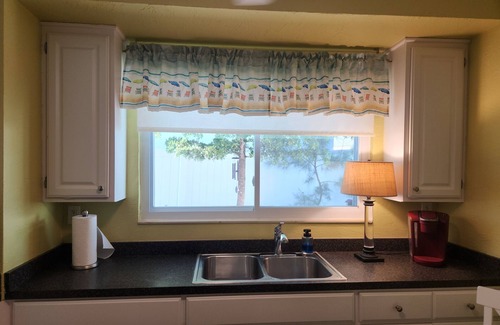 Inside, you’ll find a comfortable sleeping area equipped with a queen-size bed, chair, and an internet-enabled TV with WiFi for your entertainment. The recently remodeled bathroom offers a convenient step-in shower and updated fixtures.