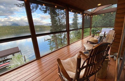 Welcome to the Life of Reilly! Guests are sure to enjoy a memorable vacation in this professionally decorated, 3 bedroom/2 bath log home. Situated on Hayden Lake and complete with a private covered dock, guests can enjoy the use of kayaks, paddle boards and the canoe. The utterly relaxing 1000 sq. ft. screened in porch is everyone's favorite spot! Enjoy coffee in the morning on the comfy porch sofas while soaking up the view. The dining table on the screened in porch is perfect for leisurely meals and games.