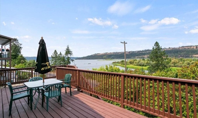 Nature's Paradise. Unobstructed views of CDA Lake, right off the 300sq ft deck. It has a Large Kitchen and open floor plan. At night you can warm up by the fireplace. There is also a fire pit to roast marshmellows and enjoy a bottle of wine. Watch a bald Eagle catch a fish. You can bike for days on the CDA trail that is a stones throw away. Fantastic city marina that you can moor your boat free, for 48 hours. 5 min walk to town where there is lots to explore. general store, shops, 3 restuarants, ice cream shop, public beach and a park. RV Parking avaliable on the property.