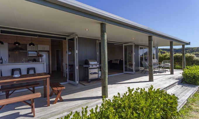 Bifold doors in the open plan lounge/dining room open out onto the deck with views to the ocean. Table and chairs are available to use on the deck, as well as a gas BBQ.