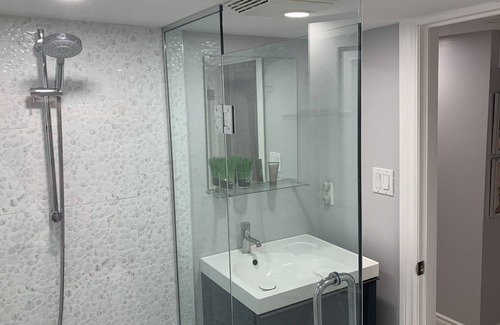 This is a fabulous bright lower level apartment with separate entrance that is fully furnished has cable, internet, 65 inch TV, small counter convection oven, mini fridge, access to outdoor BBQ, closet and dressers, desk, pull out bed, brand new furniture, linens and bathroom. Access to backyard as well so if you have pets its perfect too.