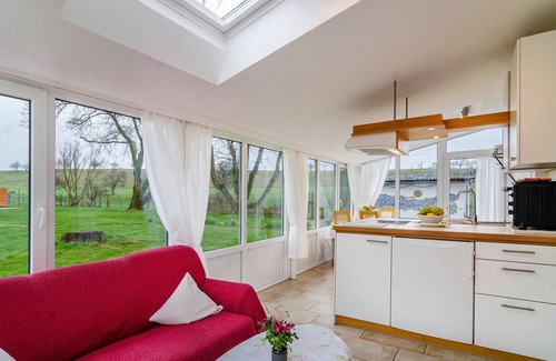 The beautiful apartment “Haus Nussbaum” is situated in a quiet rural area outside of Überlingen, only a short drive from Lake Constance, and is the ideal location for relaxing holidays in this beautiful area. The 52 m² apartment consists of a living room with a dining area, a well-equipped kitchen with a dishwasher, 2 bedrooms (one with 2 single beds) as well as one bathroom and can therefore accommodate 4 people. Additional amenities include Wi-Fi, a washing machine and satellite television. The apartment is surrounded by green meadows and, and you can start the day with breakfast on the private open terrace with seating furniture, next to the shared garden with trees and a little fishpond. You can also spend the evenings with a glass of wine and delicious meals from the barbecue, which is shared with the other apartments. A café can be found only 30 m away, a supermarket is located a 5-minute drive (3.5 km) away, a bakery can be found after a 6-minute drive (4.2 km), and there are several restaurants within a 6-minute drive (4 km). From the property, the closest beach, Strandbad West in Überlingen, is an 8-minute drive (4.8 km) away, where you can take swims in the clear blue water and enjoy the beautiful lake and mountain panorama. The charming centre of Überlingen, with lovely architecture, bustling promenades and a thermal bath in a 7-minute drive (4.7 km) away. Other beaches can be found in Sipplingen (an 11-minute drive or 8.7 km) and Ludwigshafen after a 13-minute drive (11.7 km). From the ferry terminal in Meersburg, a 20-minute drive (18 km) away, you can cross the lake to Konstanz and visit the picturesque old town centre with centuries-old architecture and a famous cathedral. The Lake Constance region offers numerous great hiking and cycling routes through scenic landscapes and along the lakeshores. In winter, you can even go skiing after a 28-minute drive (27.8 km) or across the nearby Austrian or Swiss borders.