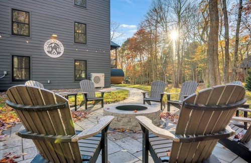 Venture outdoors to find a lineup of luxurious outdoor amenities designed to embrace the serenity of the Poconos. The undercover hot tub and sauna offer an indulgent way to unwind after a day of Lake Harmony activities, while the outdoor bar and firepit invite late-night stories and stargazing sessions.