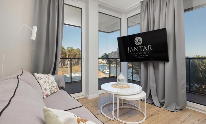 Lighthouse Mrzeżyno - Jantar Apartamenty offers accommodations in Mrzeżyno, a 10-minute walk from Mrzeżyno Zachód Beach and 13 miles from Kołobrzeg Railway Station. This apartment features air-conditioned accommodations with a balcony and free Wifi. On-site staff can arrange a shuttle service. The apartment provides guests with a terrace, river views, a seating area, a flat-screen TV, a fully equipped kitchenette with a dishwasher and a toaster, and a private bathroom with shower and a hair dryer. A fridge and stovetop are also offered, as well as a kettle. At the apartment complex, units have bed linen and towels. Kolberg Pier is 13 miles from Lighthouse Mrzeżyno - Jantar Apartamenty, while Kołobrzeg Lighthouse is 13 miles from the property. Solidarity Szczecin-Goleniów Airport is 58 miles away.