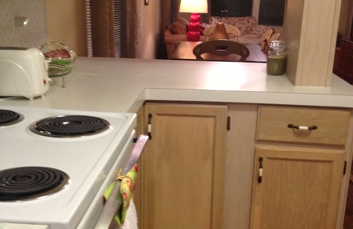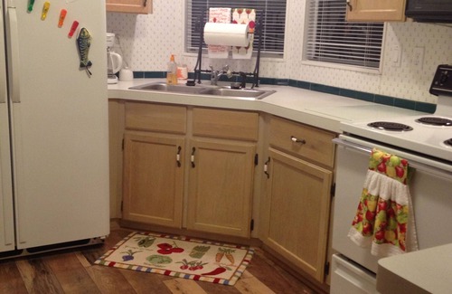 This home with 2 spacious bedrooms and 1 bathroom sleeps 4 people comfortably. Queen size bed in master, full size bed in guest room. Kitchen is fully stocked with pots & pans, utensils, dishes, and enough "essentials" in bathroom and kitchen to get your vacation started.
