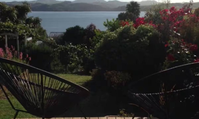 Lil Petit Paradise is a charming garden studio in Mangonui away from the main house, offering sweeping harbour views and peaceful surroundings.' With the main house