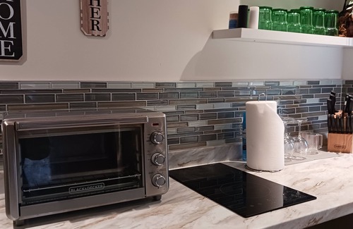 The kitchen is provided with a cook top. We provide a small counter top oven for your baking needs.