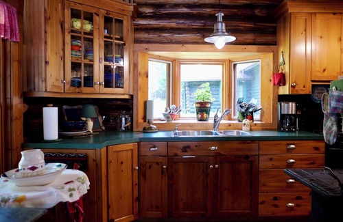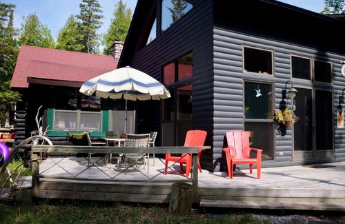 This is a unique home in which two original log homes built in the 1940s were joined together, creating an elegant lodge that accommodates up to 8 people. Step out onto one of the three decks to take in the view of the beautiful south shore.