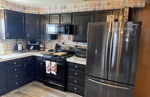 Enjoy great sunrises and sunsets at this home and sit by the campfire for an enjoyable evening with family and friends. Your kids will love the old fashioned swing hanging in the tree and the playroom. We also have a pool table and lots of games for everyone to enjoy . This home is huge with lots of space. Upstairs we installed individual A/C units to make everyone comfortable while staying.