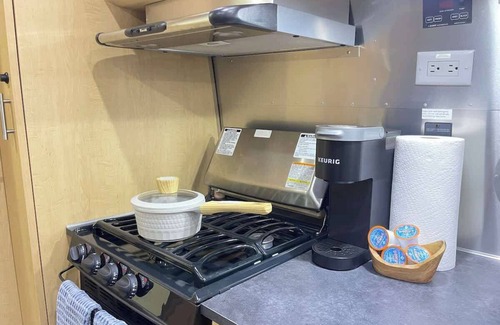 This memorable Airstream is anything but ordinary. You will be amazed by its beautiful and smart interior packed with all the amenities and comforts of modern life. This beautiful glamper is located on a large property of nearly an acre of private land. Your only neighbors will be other guests staying at the main house, which is adjacent. Still, the space is set up to feel welcoming and private at the same time. It was set up and designed with you in mind - come stay here! You will LOVE IT!
