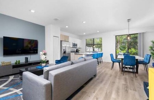 Escape to our sun-kissed townhouse in the pulsing heart of Fort Lauderdale/Pompano Beach. Perfect for adventurers, families, or business nomads, our luxe retreat comfortably sleeps 8. Kids and adults alike will revel in our custom playroom—climb, jump, play! Dive into the community pool or challenge yourself on the tennis and basketball courts of the famed The Prestige at Palm Aire Country Club. Just a 15-minute dash from FLL airport, our door opens to the ultimate Florida experience!