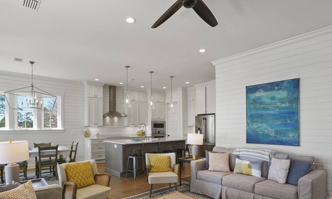 SLEEPS 8! Newly built in 2021, this home is stunning! The entire upstairs encompasses the Primary suite and oversized bathroom! You will be in nothing but luxury on your stay at "No Worries" with all the granite countertops, spacious living areas, and nice size bedrooms and bathrooms that include all the updates you will enjoy!! There is a charcoal grill & picnic table under the home for outdoor meals as well as a basketball goal.