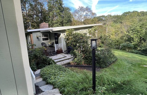 Kickback, relax, & listen to the babbling of Bee Brook in this newly renovated mid-century cottage. Located on 4 acres on a quiet backroad, this home has everything you need to enjoy Litchfield County & it’s surroundings. Heat and A/C throughout, 2 fireplaces, 2 flat screen TV’s with AppleTV, extra fridge downstairs, grill, outdoor fire pit, outdoor deck, plenty of outdoor space, parking for 3 cars. In the heart of Litchfield County, minutes from Lake Waramaug, wineries, hiking trails, orchards, antiquing, and great restaurants. Enjoy walks on country roads by day & evenings by the fire-pit. 5-10 minutes from some of the best hikes & restaurants (Community Table, Arethusa, and more) Litchfield County has to offer. The house is clean, comfortable, and a lovely place to relax. A large portion is newly renovated with new furnishings & no clutter.
