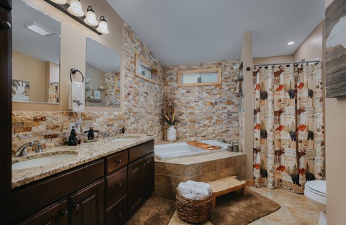 Little Bear Lodge is our newest cabin added in 2018. This home is full of rustic modern charm and 100% remodeled. Open concept space with 3 bedroom and 2 full baths. Large kitchen is a cooks delight. Master bathroom is your own private rustic retreat with soaking tub to unwind and recharge with a book and a glass of wine. The Outdoor space is amazing with 3+ acres of wooded and open land , a babbling brook, outdoor fire pit, covered front porch, back deck with gas grill. Centrally located making this perfect for day trips to Philadelphia, Amish Country, New York City and the Poconos.