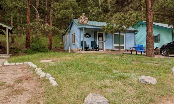 Travel over the river and through the woods to a little bit of vintage Colorado paradise! Located right off Highway 285, on the grounds of the Bailey Lodge and Riverdale Village in Bailey, Colorado is the Little Bit Lodge, with the Pike National Forest right in the backyard. Enjoy a quiet respite only an hour from Denver, in this one bedroom, one bath lodge. It can accommodate kids with two additional cots. It has a full kitchen to allow cooking or you can enjoy Bailey's restaurants just two miles down the road. The central location enables you to easily visit Conifer, Evergreen, Georgetown, Breckenridge, and Kenosha Pass to see fall colors. Bailey is a joy itself, a true unspoiled original mountain town. Nearby hiking, zipline, camping, and don't miss the beauty of Wellington Lake. Amenities at the lodge include outdoor community pool in the summertime, 11 acres to explore, playground, community BBQ and picnic gazebo, the Platte River, and a catch and release fishing pond. Enjoy this beautiful resort mountain environment as a quick getaway from the city for some rest and relaxation or an outdoor adventure. Or you can just sit on the porch and stare at the beautiful mountain scenery while listening to the river and smelling clean pine scented air. You can have a picnic on your private picnic table in the front yard. You will not be disappointed in this little bit of Colorado paradise!