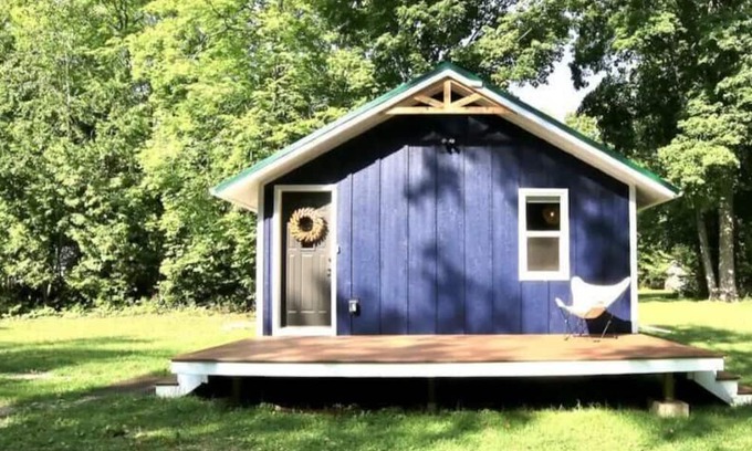 We call our place ‘Little Blue by the bay.’ It is a tiny home located across the street from the lake, in the scenic Ford River area of M-35 in Escanaba Michigan. The home is perfectly designed for two people who are looking for a relaxing getaway, or someone who is passing through for work or leisure and needs a little r&r along the way. Just minutes from river access, boat launch, public beach and local breweries.