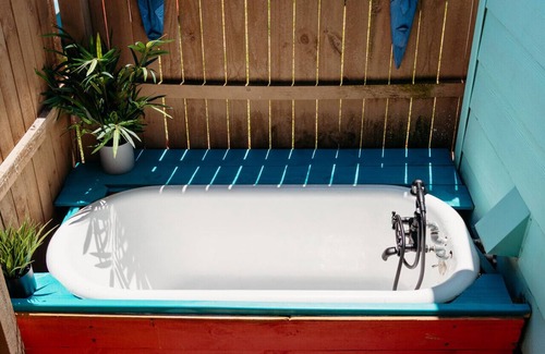 It is impossible not to fall in the love with the Weeki Wachee River - it's magical! The Little Bohemia Lodge is the perfect waterfront getaway - a perfect mix of retro and updated - you'll love the funky fun touches! You will probably find yourself spending most of your time out back watching manatees float by, grilling out, or sitting by the fire pit. Our outdoor Tiki Tub is perfect for hot baths after the cool river! The property comes with 2 tandem kayaks and 2 singles for your enjoyment.