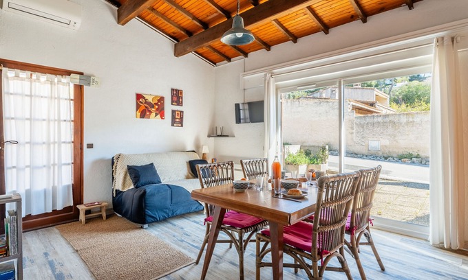 The "Petite Briandière" is a 30 sqm house located in the Fontsainte district with access to the Bay of the Virgin and its beaches.Air-conditioned and renovated to offer you a friendly and relaxing environment. It offers a nice volume with its high ceiling under roof and a neat decoration to comfortably accommodate 2 to 4 people.Also enjoy its terrace and its fenced garden of 200 m2 offering shaded spaces in summerTo guarantee your comfort and quality of service we have classified this property as a 2-star tourist furnished by an accredited organization. It also reduces the cost of the touristic tax.Included in the rental: WIFI, end-of-stay cleaning, bed linen, bath towels, 1 space car park and your first consumables (coffee, toilet paper, garbage bag, washing-up liquid, dishwasher and washing machine capsules).Pets are accepted subject to the owner’s acceptance.Renovated and equipped with air conditioning, this house of about 30 sqm, offers a well-equipped kitchen open to a living room/stay that offers a very nice volume with its ceiling under roof.There is also a bathroom (between 2 and 3 sqm) and an open mezzanine room in 30 sqm with a comfortable double bed. A curtain preserves the privacy of the room if needed. Note that the ceiling height of the mezzanine is slightly less than 1m70 at its high point. The living room's convertible sofa can offer 2 additional beds.The beautifully wooded garden is very nice with its terrace. It is also completely enclosed for your pet.You can enjoy the shade under the pergola while tasting the grape from the garden when it's the season.The property gives you access to all amenities and you will find free outdoor parking in front of the house.We can provide you with a high chair and a foldable cot free of charge. Long-term rental is possible. Contact me for a quote.Travelers’ accessThe house is dedicated to renting as a whole.Interaction with travellersYou will have a unique contact available to welcome you, carry out check-in and check-out. This person will introduce you to the property as a whole, how it works and will be available during your stay if you have any questions about the accommodation. She will give you and comment on our tour guide who advises you on typical days to discover the region. She can be reached by email and on her cell phone.Other remarksAnimals are accepted subject to acceptance by the owner.It is not allowed to smoke inside the house.The house cannot be rented to organize parties or events.Arrival times: 4pm-7pm, departure time: 9am - 11am. In summer, the agency will define the time of provision of the property and departure in these slots according to the schedule of the maintenance and reception teams.The house is close to the La Ciotat tennis club. It only takes you two minutes to start a game.The maximum height of the mezzanine ceiling is 1.70 m. The neighbourhoodThe house is at only 1,5 km by car of the beaches of the “bay of the Virgin” which are easily accessible on foot in 15 mn by a path near the house.You can intend to come by train up to the station of La Ciotat and to join the house on foot. You will find nearby a bakery, a pharmacy, a restaurant but also all the businesses in the nearby district, saint Jean's district.The house is served by the bus (line 20) which can take you to the historical center.After a few hours of lazy and savoury, you can easily enjoy La Ciotat and its unique environment with its spectacular coastline, its bay nicknamed «LE GOLFE D'AMOUR», but also its hinterland: Calanques park, Calanque de Figuerolles, park and Calanque du Mugel, green island, beaches, circuit du Castellet, etc.On or under the water, on land or in the air, the choice of activities is wide: diving, navigation, kayaking, hiking or simply relaxing to enjoy the omnipresent sun.Guests can also resume their vehicle and take the opportunity to discover the AOC vineyards of Cassis or Bandol, visit the Calanques by boat, opt for a golf course, hike in the Castellet massifs or in the Calanques reserve, etc.TransportThe villa is close to all the amenities.The bus and train station are 500 meters away.
