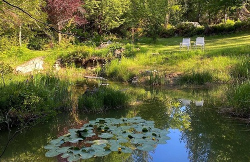 Our property is also where we live and work at our art. We have a studio and workshop plus a garden and green house with a big backyard with a pond.. We also have two happy dogs and a nosy cat that are free roaming. We would welcome your dog if they get along with our dogs and cat.