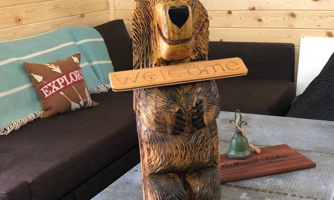 Inside, you'll find a well-appointed bathroom with ample space to utilize the washer and dryer, a fully-equipped studio kitchen complete with a dishwasher and garbage disposal, and in the living room area, - a generously sized flat-screen smart TV connected to the internet for your entertainment. The comfortable sofa on the main level conveniently transforms into a queen-sized pull-out bed, comfortably accommodating 1-3 guests. Additionally, a snug loft features a queen-sized log bed, offering a cozy retreat. And don't forget to relax in the new hot tub, perfect for two or three guests to unwind.