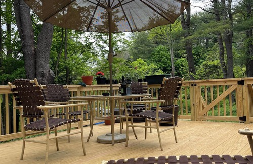 Step back in time into the historic charm of the Chapel of Camp Rip Van Winkle, a summer camp established in 1920 by the Cowhey sisters. This Catskills retreat blends old time campy nostalgia with modern amenities. Relax with a glass of wine in the screened-in porch or on the deck, watching hummingbirds and listening to the sounds of Kaaterskill Creek and nearby waterfalls. Enjoy quiet strolls along picturesque roads, your own outdoor shower, and the peaceful sounds of rain on a tin roof. Our space is a “studio” space with a trundle twin bed as soon as you enter, a queen pullout sofa, and comfortable king bed. We provide a guest welcome guide upon booking.