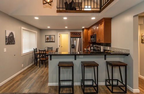 We have Wi-Fi access and a designated workspace so that you can work peacefully. The well-stocked kitchen will have you covered at mealtime. The cottage has a main floor bedroom with a queen bed, an upstairs bedroom with a queen and a twin bed, and an open loft area that can accommodate an additional person for sleeping (additional person fee per night). The bathroom is located on the first level.