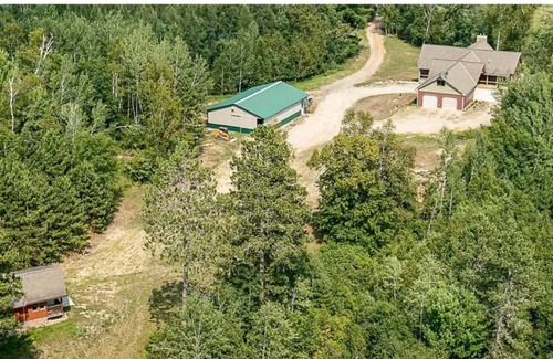 This Luxurious Lodge and Cozy Cabin in the deep woods are tucked down scenic country roads between two lakes. Watch the wildlife walk past from the comfort of the porches or decks; or snuggle up inside to take advantage of views of the lake and all manner of wildlife through the wide windows.
